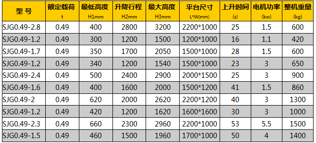 固定式升降平臺(雙叉)技術參數: