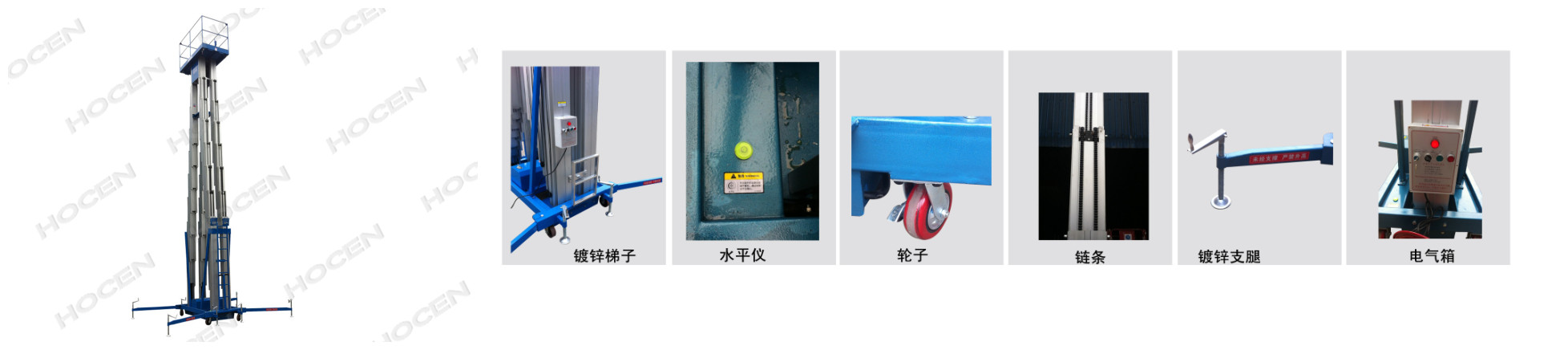 多桅式鋁合金升降平臺動力電源:默認:單相交流電。