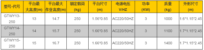 多桅式鋁合金升降平臺技術參數: