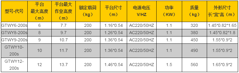雙桅式鋁合金升降平臺產品參數: